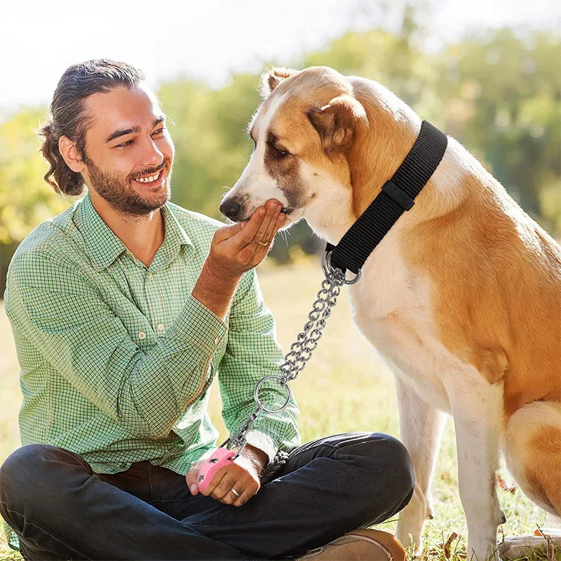 This adjustable chain is designed specifically for medium to large nylon dog collars, offering a reliable strength and flexibility for outdoor walks. Its sturdy construction ensures secure control while allowing easy adjustment for a comfortable fit. Ideal for active dogs, it combines durability with practicality to enhance your walking experience.