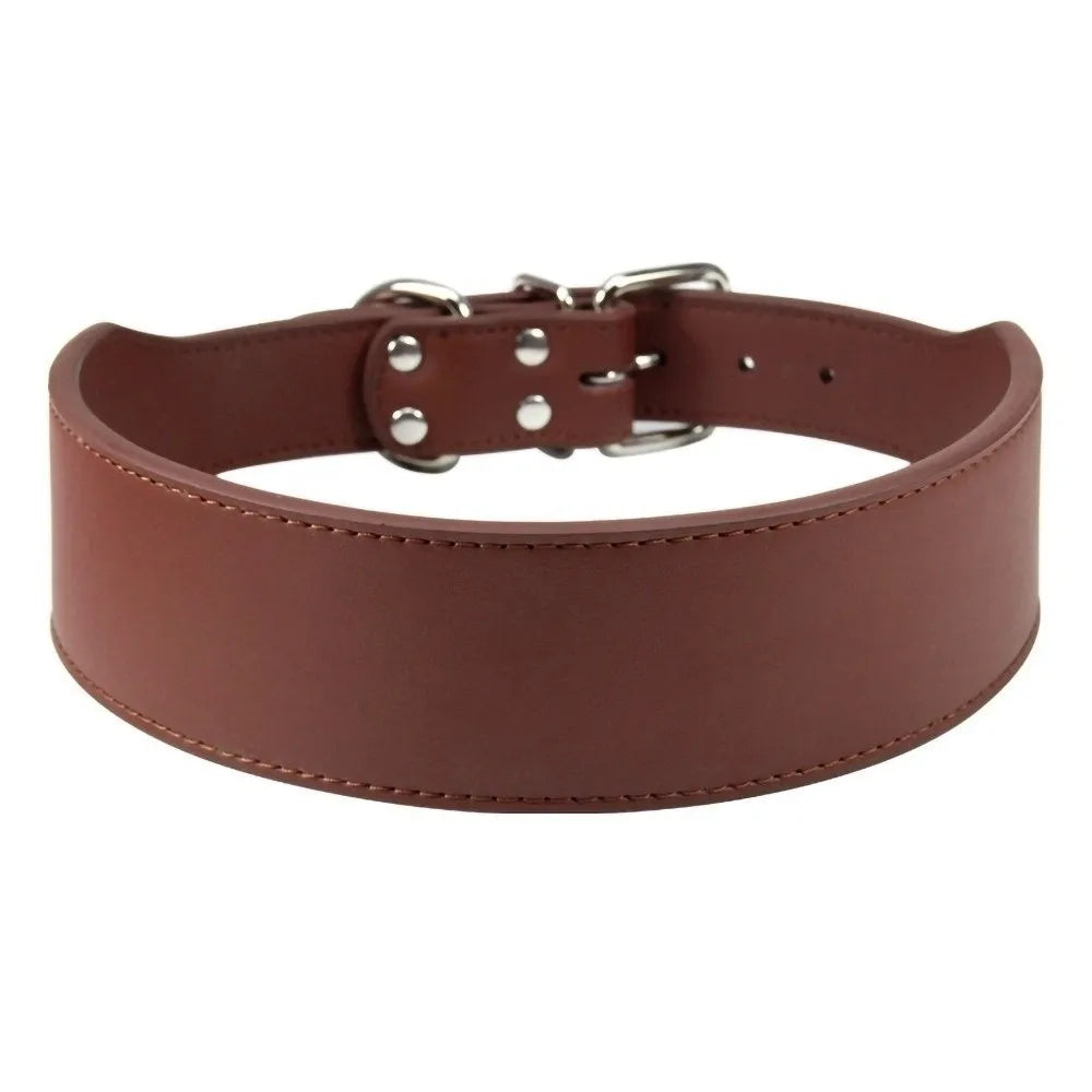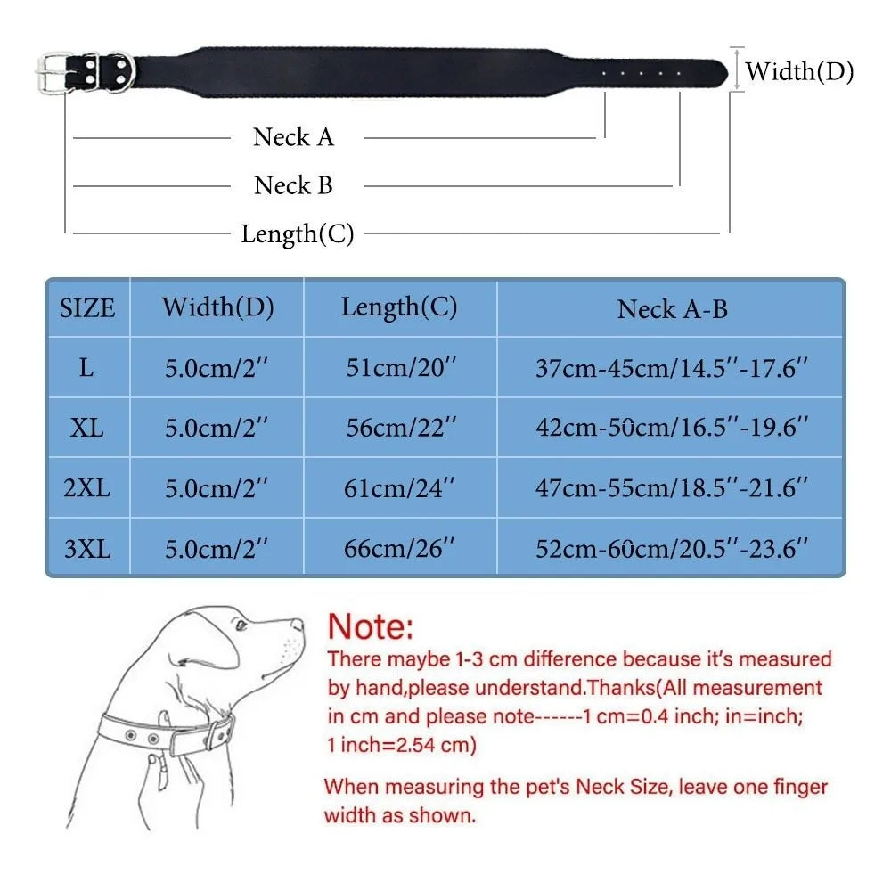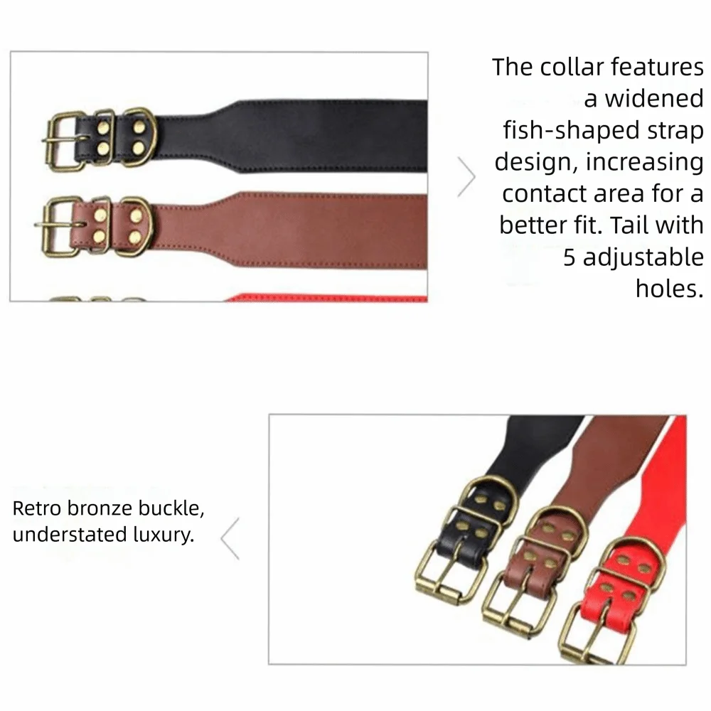 Made of great quality leathers, this collar is both durable and comfortable, perfect for everyday wear. The wide design ensures even pressure distribution around the neck, preventing discomfort or injury.