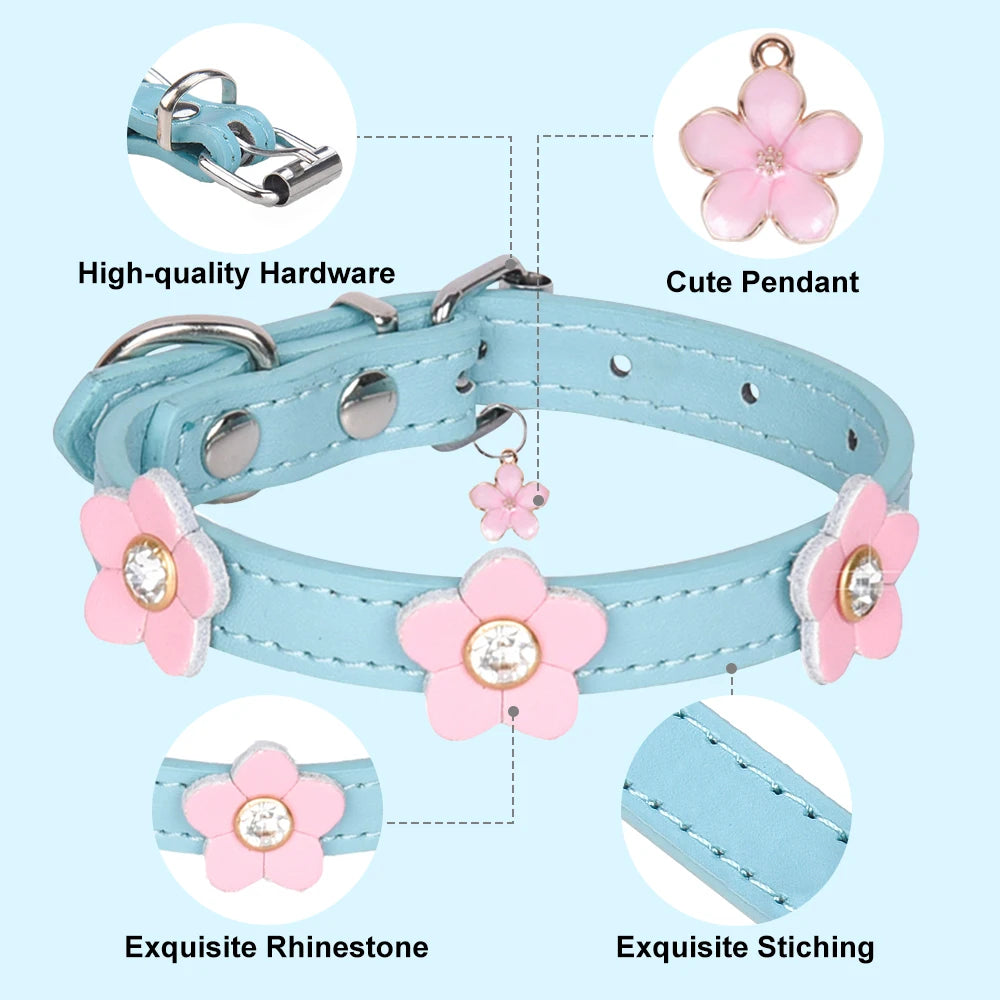 White Blue Pink Cute Necklace PU Leather With Flower Accessory Puppy Collars For Small Medium Dogs Cats Chihuahua Yorkshire