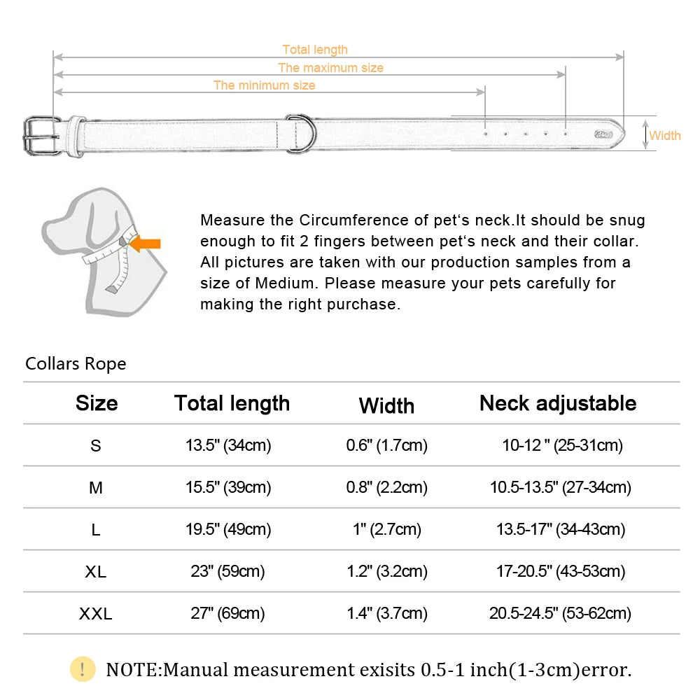 Soft Padded Adjustable Bulldog Chihuahua Necklace Leather Dog Collar,Fit for :Small Medium,Large and X-Large Dogs,e.g .Boxer,Pitbull,Bull Terrier,Golden Retriever,German Shepherd,Rottweiler,etc.