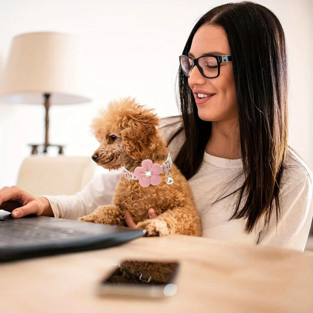 With Flower Puppy Collar for Small Dogs Cute Dog Collar with Bell Adjustable Length,This Flower Puppy Collar is designed specifically for small dogs, offering both style and comfort.